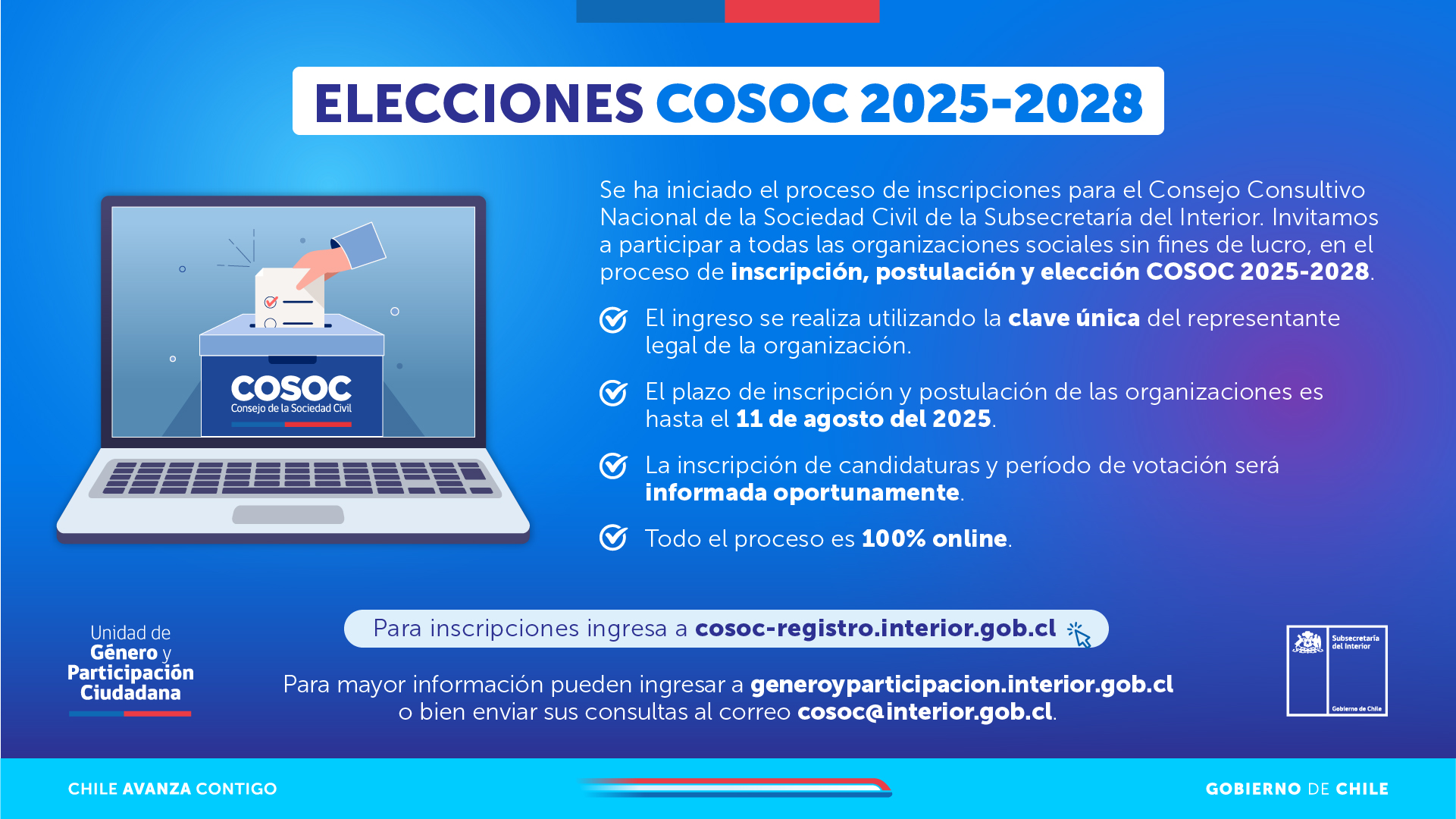 Consultas al correo electrónico: cosoc@interior.gob.cl